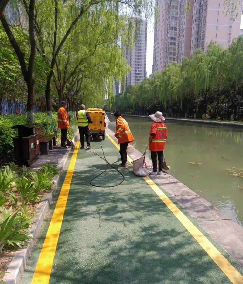 針對(duì)人員流動(dòng)量大的重點(diǎn)路段,軒潔公司逐漸增加機(jī)械化灑水、沖洗力度及頻次,加大清潔力度,全天候巡回保潔,在完成一天普掃的基礎(chǔ)上隨臟隨掃,加大保潔力度,環(huán)衛(wèi)工人用小掃帚和半封閉式的小簸箕及時(shí)清理成團(tuán)的楊柳絮,做到隨有隨收集隨清除,保證路面干凈整潔。